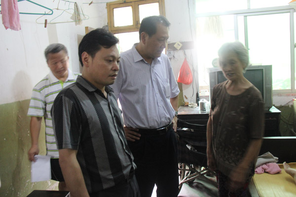 集團(tuán)資訊 “七一”前夕,江西省水利廳直屬機(jī)關(guān)黨委專職副書(shū)記、宣傳處處長(zhǎng)隋曉明,副處長(zhǎng)占任生一行于6月26日下午到我司職工生活基地看望慰問(wèn)老黨員和困難黨員。隋副書(shū)記一行來(lái)到退休困難黨員彭南山、江海泉等人的家里,帶來(lái)廳黨委的關(guān)心和慰問(wèn),并為他們送上慰問(wèn)金。隋副書(shū)記詳細(xì)詢問(wèn)了公司退休困難黨員的生活情況,叮囑他們要保重身體,安度晚年,并表示黨沒(méi)有忘記他們,水利廳和水建公司領(lǐng)導(dǎo)也時(shí)刻關(guān)心著老黨員。