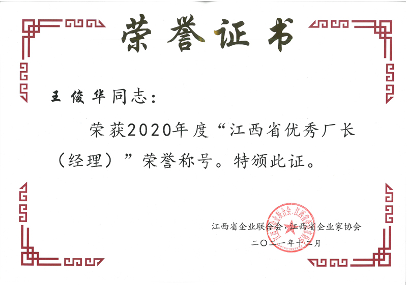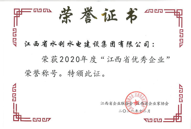 近日,江西省企業聯合會、江西省企業家協文件《關于表彰“2020年度新時代江西杰出企業家、江西省優秀企業、江西省優秀企業家、江西省優秀廠長(經理)”的決定》公布了2020年度江西省優秀企業等獎項的評選結果。集團獲評江西省優秀企業;集團董事長王元旦獲評新時代江西杰出企業家;集團常務副總裁王俊華獲評江西省優秀廠長(經理)。至此,集團已連續二十二年被評為“江西省優秀企業”。榮譽是一種肯定,更是一種責任,集團將以此為動力,新的一年再接再厲,繼續以優秀水利龍頭企業的標準嚴格要求自己,不斷超越自我,開創企業發展多元化新格局,持續提高市場競爭力和社會影響力。