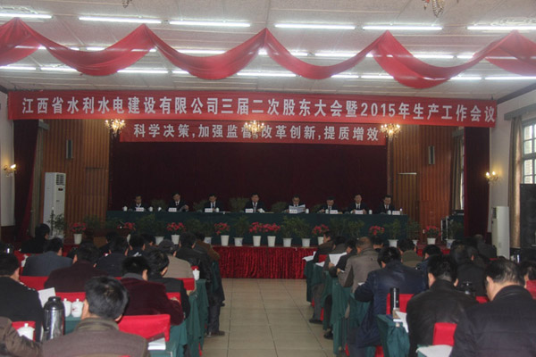春回大地,萬象更新,正值全國(guó)兩會(huì)召開之際,江西省水利水電建設(shè)有限公司第三屆二次股東大會(huì)暨2015年生產(chǎn)工作會(huì)議,于3月10日在南昌隆重召開。公司董事、監(jiān)事、股東、中高層管理人員及員工代表共86名代表會(huì)聚一堂,共商公司改革發(fā)展大計(jì),描繪企業(yè)美好藍(lán)圖。