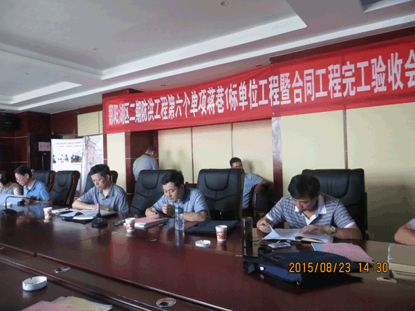 2015年8月23日,江西省鄱陽湖區二期防洪工程第六個單項工程建設項目部在南昌縣主持召開了江西省鄱陽湖區二期防洪工程第六個單項蔣巷聯圩除險加固工程蔣巷1標單位工程暨合同工程完工驗收會議。驗收工作組由江西省鄱陽湖區二期防洪工程第六個單項建設項目部、南昌縣堤防修建項目部、江西省水利規劃設計院、江西省水利工程監理有限公司、江西省水利水電建設有限公司和蔣巷聯圩河道堤防管理站的代表組成,江西省水利工程質量安全監督局派員列席了會議。公司總工程師胡鴻煌、技術質安部經理郭洪有參加了驗收會。