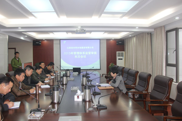 為確保我公司建立的四標一體化管理體系持續運行有效,符合質量、環境、職業健康安全管理體系及GB/T50430-2007標準的要求,2015年12月6日~8日,北京中大華遠認證中心派出認證審核小組,對我公司實施本年度監督審核,先后對公司領導層、技術質安部、工程部、海外公司、市場部及興國縣長岡灌區改造工程項目部實施了現場抽查審核。