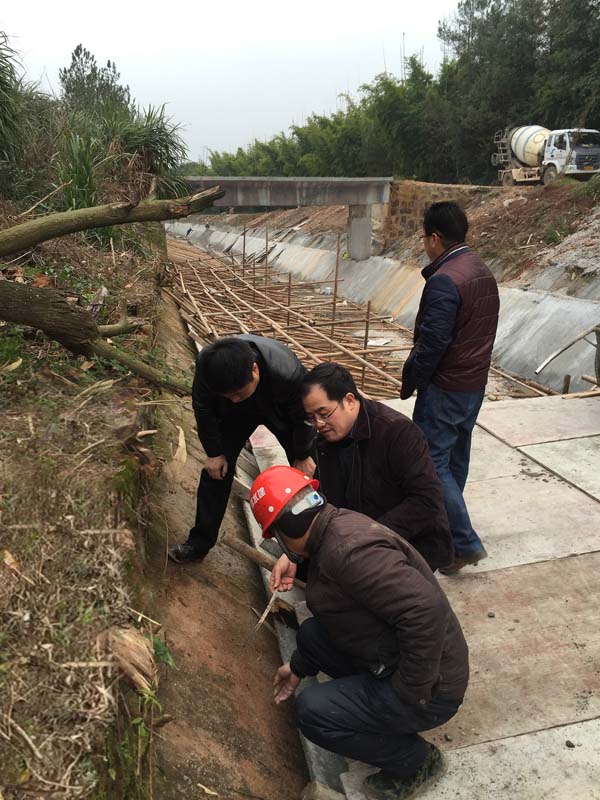 2015年12月28日下午,公司總經理徐洪良一行,蒞臨國家煙草總公司援建水源工程項目江西省興國縣長岡灌區(qū)改造工程施工現場檢查項目施工開展情況。
