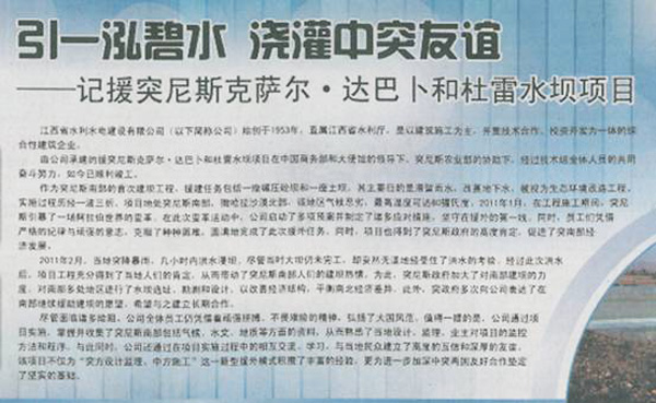 由公司承建的援突尼斯克薩爾?達(dá)巴卜和杜雷水壩項目在中國商務(wù)部和大使館的領(lǐng)導(dǎo)下、突尼斯農(nóng)業(yè)部的協(xié)助下,經(jīng)過技術(shù)組全體人員的共同奮斗努力,如今已順利竣工。