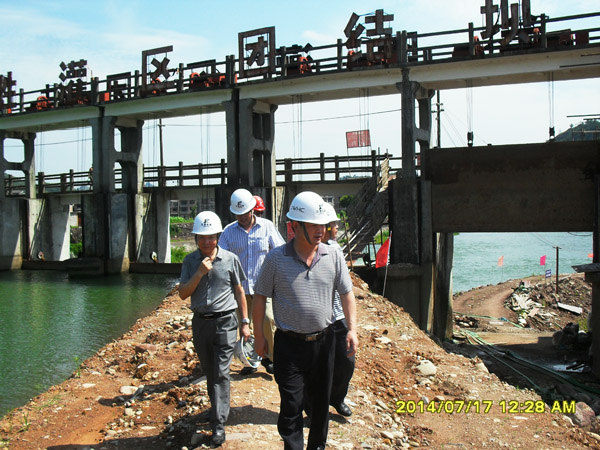 2014年7月17日上午,夏日炎炎,公司董事長兼總經(jīng)理王元旦一行首先來到廣豐縣團結水閘除險加固工程施工現(xiàn)場,親切看望了工地全體員工。