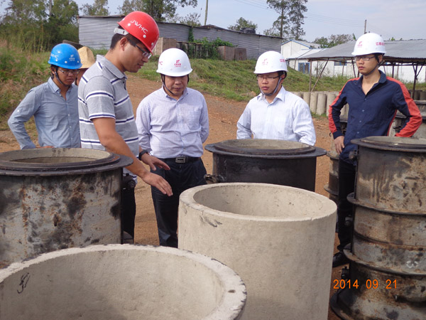 2014年9月21日,公司副總經理胡鴻煌前往肯尼亞BONDO-SIAYA污水處理項目部,項目經理唐志兵等的陪同下,對項目部砼預制管廠、污水池、污水管線等正在施工的工作面進行了現場檢查和指導。