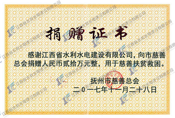 公司積極參與此次“善行撫州 助力扶貧”專項工程活動,向撫州市慈善總會捐贈慈善資金20萬元。此次捐贈慈善資金活動是繼續幫扶南城縣洪門鎮莊上村之后又一重要扶貧舉措。在公司不斷發展壯大的同時,時時不忘初心,切實擔負起社會責任,持續為社會慈善事業奉獻愛心。