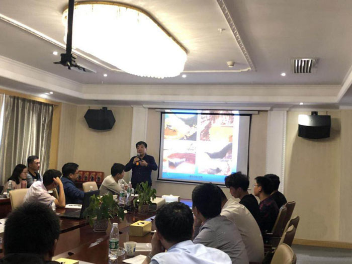 現(xiàn)場(chǎng)參觀結(jié)束后,學(xué)習(xí)團(tuán)參加了技術(shù)培訓(xùn)和經(jīng)驗(yàn)交流會(huì)。總經(jīng)理助理杜凌主持了開班儀式。總工程師胡鴻煌、項(xiàng)目副經(jīng)理李成,對(duì)洋前壩水庫的大壩總布置、大壩施工導(dǎo)流、大壩及供水管道施工技術(shù)細(xì)節(jié)等,通過文字、圖片、視頻等組成的PPT課件為學(xué)員授課,并就學(xué)員提出的問題逐一進(jìn)行了解答。